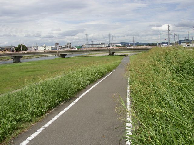 サイクリングロード出発。端まで15kmほど。天候曇り。追い風。