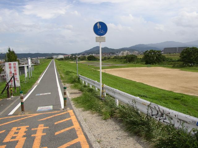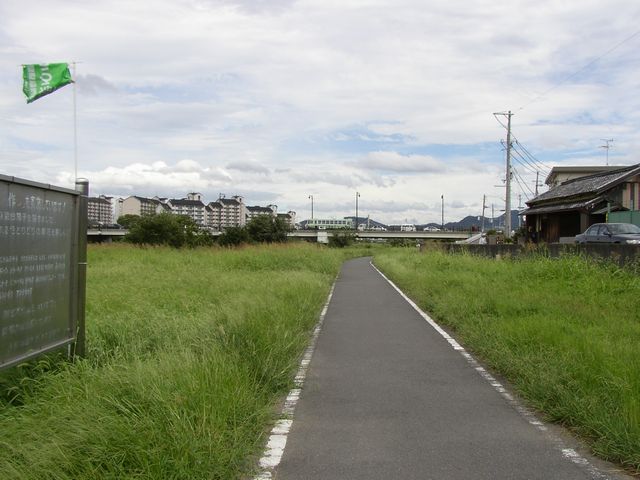 金八先生で出てきそうな土手。このあたりで雲行きが怪しくなってきた。雨パラパラ。